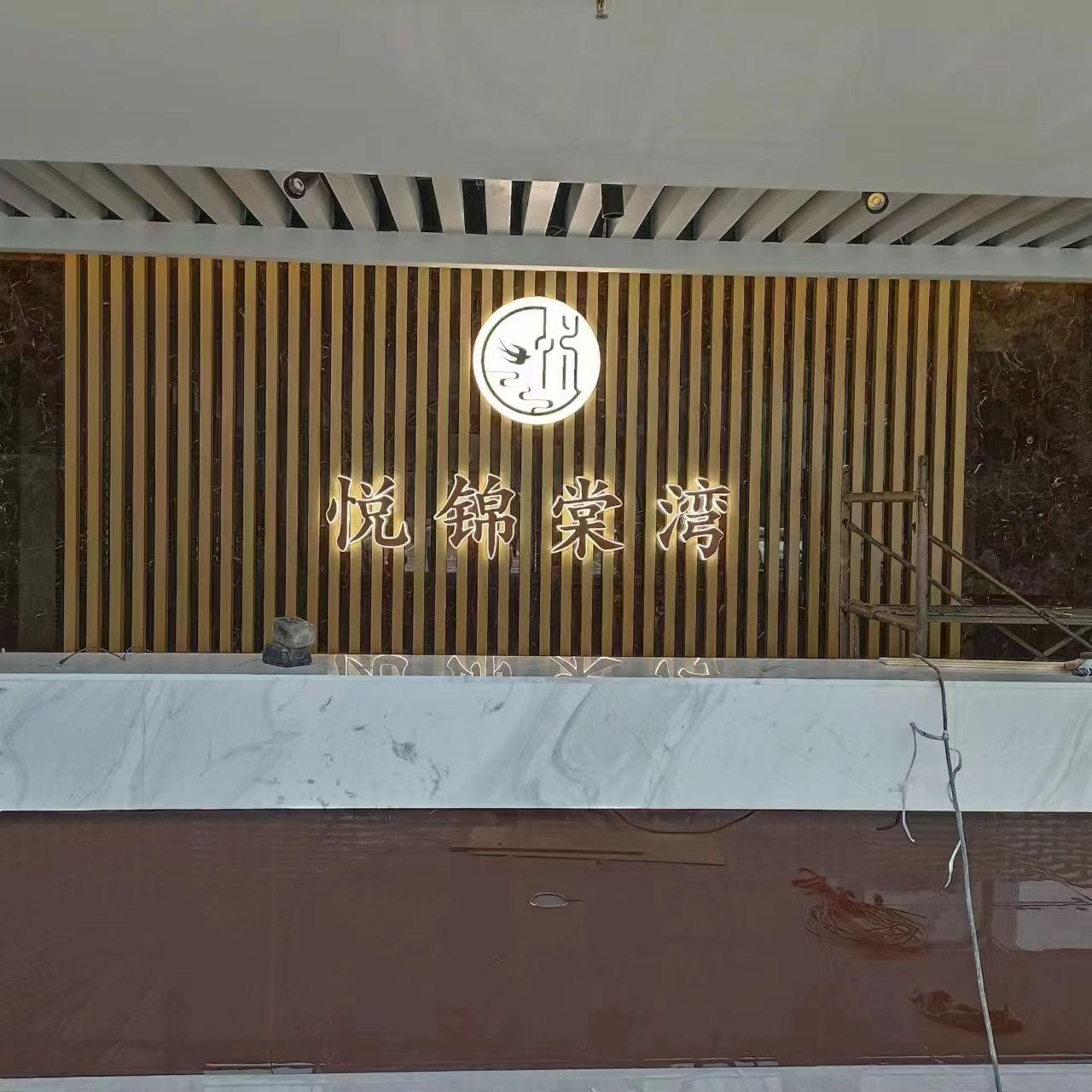 【悅錦棠灣】前臺格柵背景墻效果